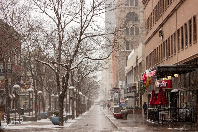 Denver, Colorado and it was snowing. For a South Florida girl – it was more than pretty cold. I was freezing. My hands were shaking and the view was gray and bleak, but I loved this street scene. This was taken with my Canon Rebel 3, with the EF-S 18-55mm lens.
