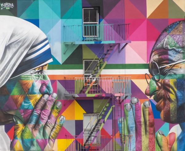 Another Kobre image that I only manage to capture a portion of was this image of Andy Warhol and Frida Kahlo. Also in the image but hidden behind the building were keith haring and Jean-Michel Basquiat. I wish I had been able to capture the entire painting but this was the best I could get between the two buildings.
