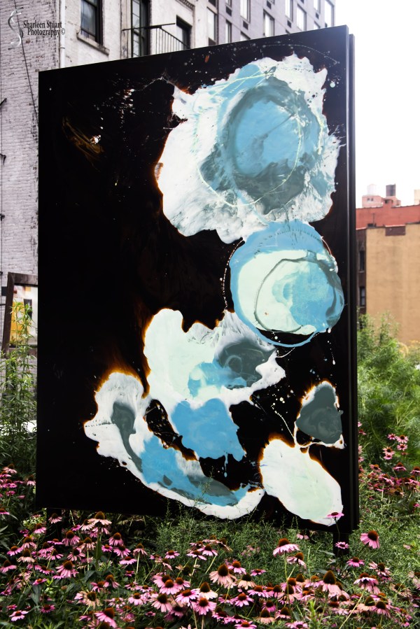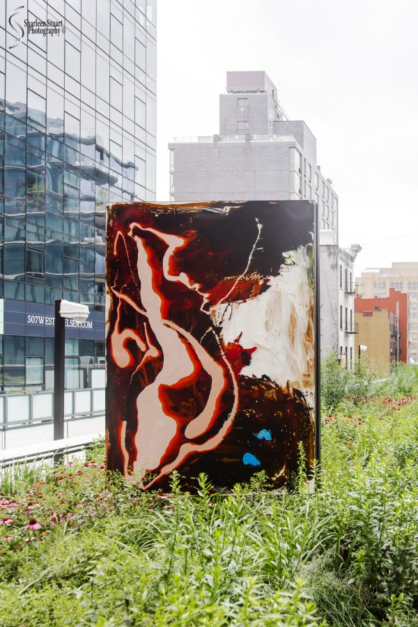 Below is art of Ryan Sullivan. He uses resin, fibreglass and epoxy to create his amazing work. According to The High Line display notice, “Sullivan’s latest artwork are the result of an industrial casting process guided by spontaneity and improvisation: he applies pigment and resin in multiple layers to an open faced mold. The resulting works use the non traditional painting concepts of figure and space, while also probing the limits of what a painting is. For The High Line, Sullivan installs four new resin paintings in conversation with the surrounding cityscape and plantings”
