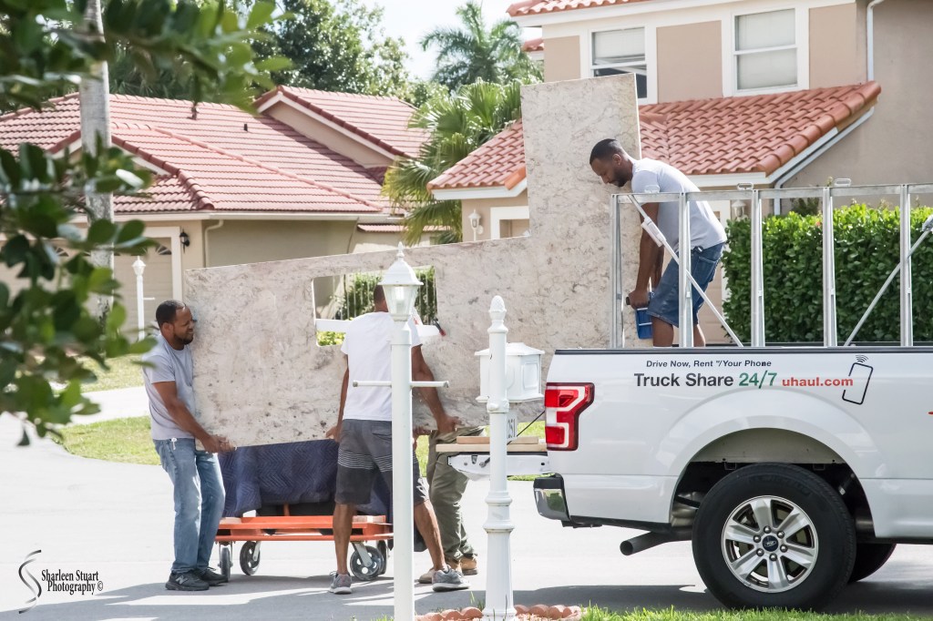 Finally the day arrived for the contractor and her team to bring in the two slabs. I was in awe of these guys. These slabs are heavy and because we wanted one solid piece that had to be very careful moving the bigger of the two pieces.