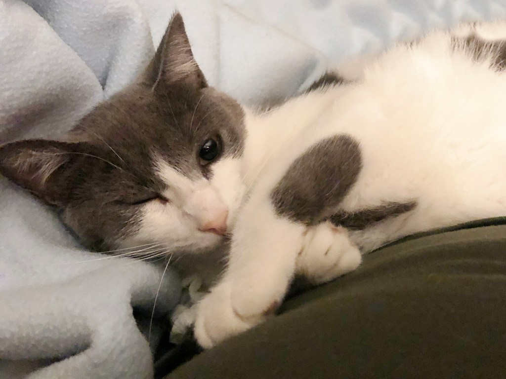 In all of this Simba, our street rescue cat, needed to have a tooth removed, and that started the worst part of 2020 for me. While intubating him the doc heard the sound of fluid in his lungs. After a couple of X-rays (which are not cheap I might add), Simba went onto a steriod for a period of time. Between the antibiotic and the steriod he definitely seemed to have perked up, but I noticed the other day that he is a little off his food again. So a new appointment has been set up for another X-ray. I am hoping that the steriod helped and that we can get the tooth out because I feel like it may be contributing to the problem. In the meantime, I am grateful for this little man who cuddles with me each day and sneaks into bed at night. He loves his scratches and his belly rubbed. He has my heart, and I am so thankful we agreed to keep him when Amy asked us to.