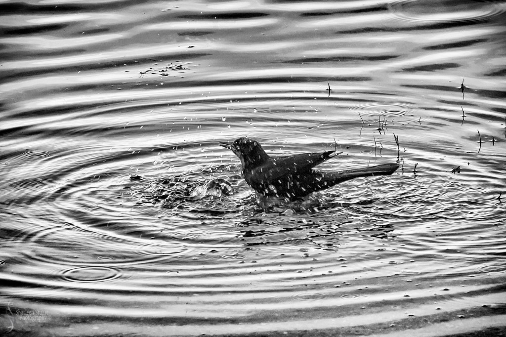 What was pretty neat was that the Grackles on the edge of the water were taking a bath at sunset. Hence the first image and the water drops.