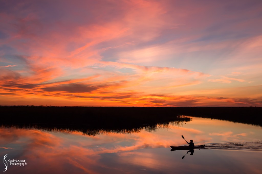 Nothing like kayaking at sunset in a alligator infested water. Oh yes, there are often alligators swimming in the water.