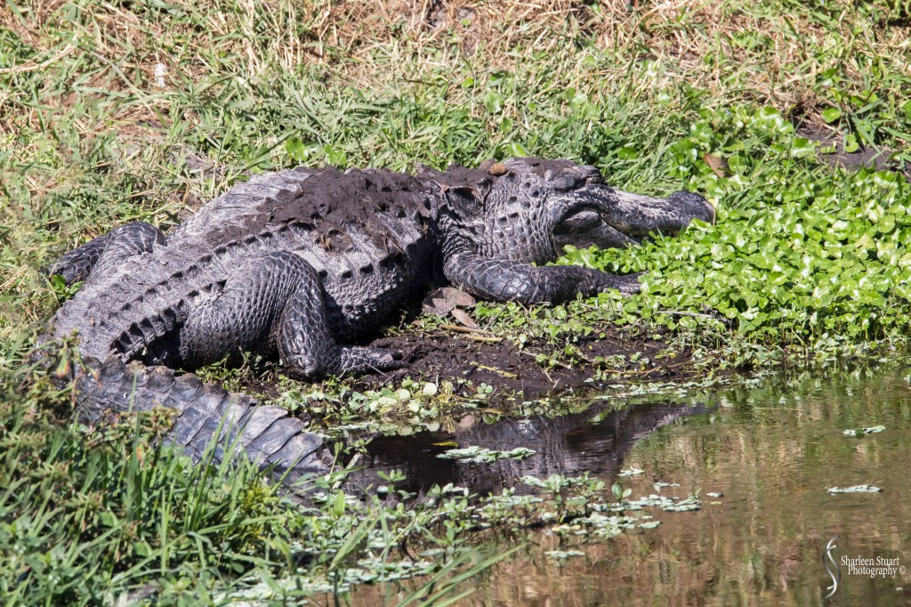 The walking in the area is great. I managed to get out and do a two mile walk but I was constantly watching for Alligator on the edge of the banks. I didn’t see Alligator but I did see a great big iguana. Unlike the wetlands, here we are on the same level as the Alligator.