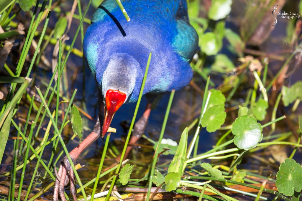 The Swamp Hen fascinate me. They are so rich in color and very similar to the Purple Gallinule. What fascinates me with these birds is their feet. They have the longest, possibly ugliest toes that I have seen on birds. They utilize them like fingers holding on to the reeds that they pull out of the ground to eat. Normally you will see a group of them wading around.