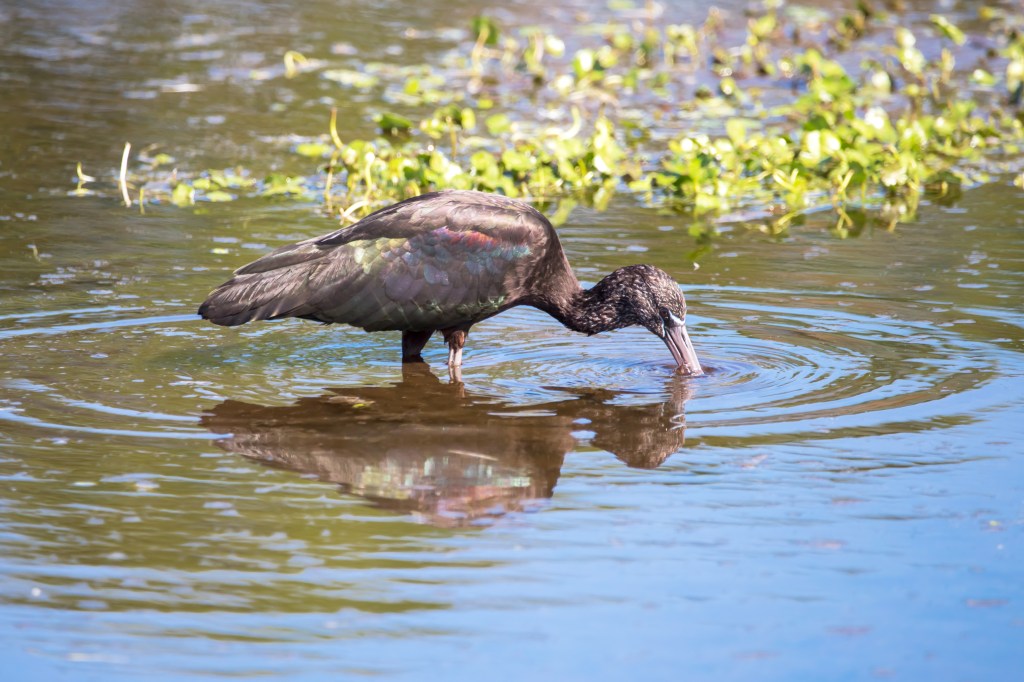 The glossy Ibis is another beautiful bird that hangs out in a group as a rule. This one had moved away from the group and started digging for food in a slightly different area. They are named glossy Ibis because of their stunning feathers. In normal light they look brownish but when the sunlight catches them their feathers become glossy and a different array of colors.