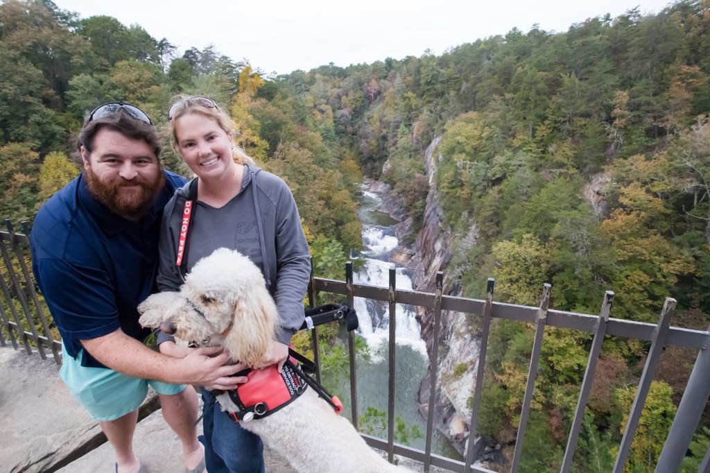 So today I am going to share 30 minutes of our trip to Tallulah Gorge in Georgia. We were staying in a cabin in the mountains in Cleaveland, really pretty isolated and remote. The property was a single track up the mountain with some cottages coming off it, but aside from asking directions on the first day, we did not see another soul. Actually that was a relief because the single track meant if a car came down someone had to give way and there was not a lot of space to pull off. Amy took her car up, and then never drove down again until the day we left. Daniel and Amy travelled with us, Cameron, Kathryn and Cody traveled in their car. Kathryn has a wheelchair and Cody has special safety requirements