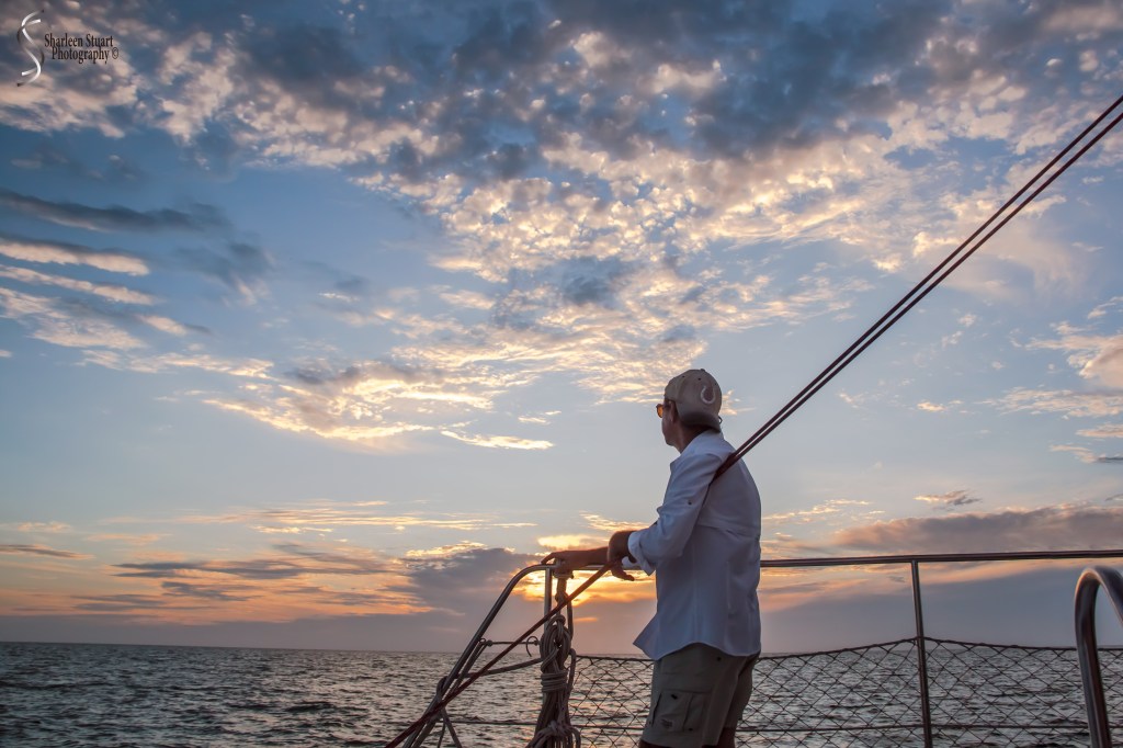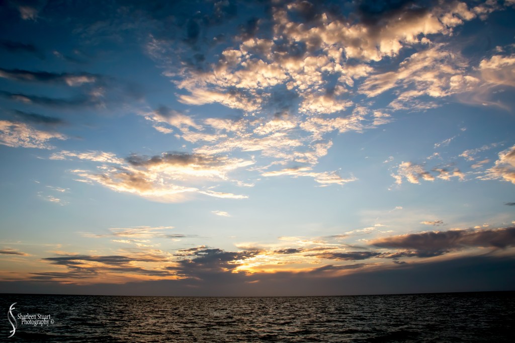 We planned a sunset cruise. So today’s blog is about getting back out on the water. However, Richard has factor 50 sun screen on, a factor 50 shirt and a hat. All things that we did not think about before. It was a perfect sky and I was convinced I could see a bird in these clouds.