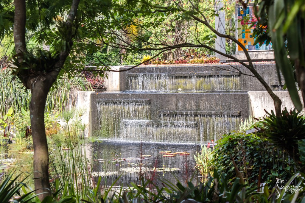 First stop was the route to the Brazilian Gardens designed by Raymond Jungles, and it introduces various plants that are native to Brazil. The walk heads up to to the beautiful waterfall and a gorgeous colorful mosaic wall, as shown below. There also appeared to have some kind of root artwork theme staged throughout the gardens. I wish there was a directory of plants so that I could share names but sadly there isn’t. Enjoy your walk through the first part of the garden.