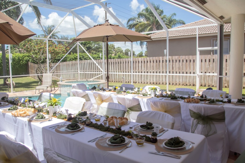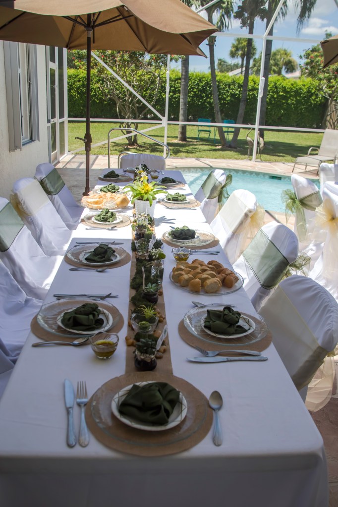 This was a beautiful outside setting, the weather was perfect, but extremely hot, so at the last minute we headed up to their old condo and borrowed the outdoor umbrella’s to create some shade. Fortunately one of the board members was at the baby shower and made that a lot easier to do.