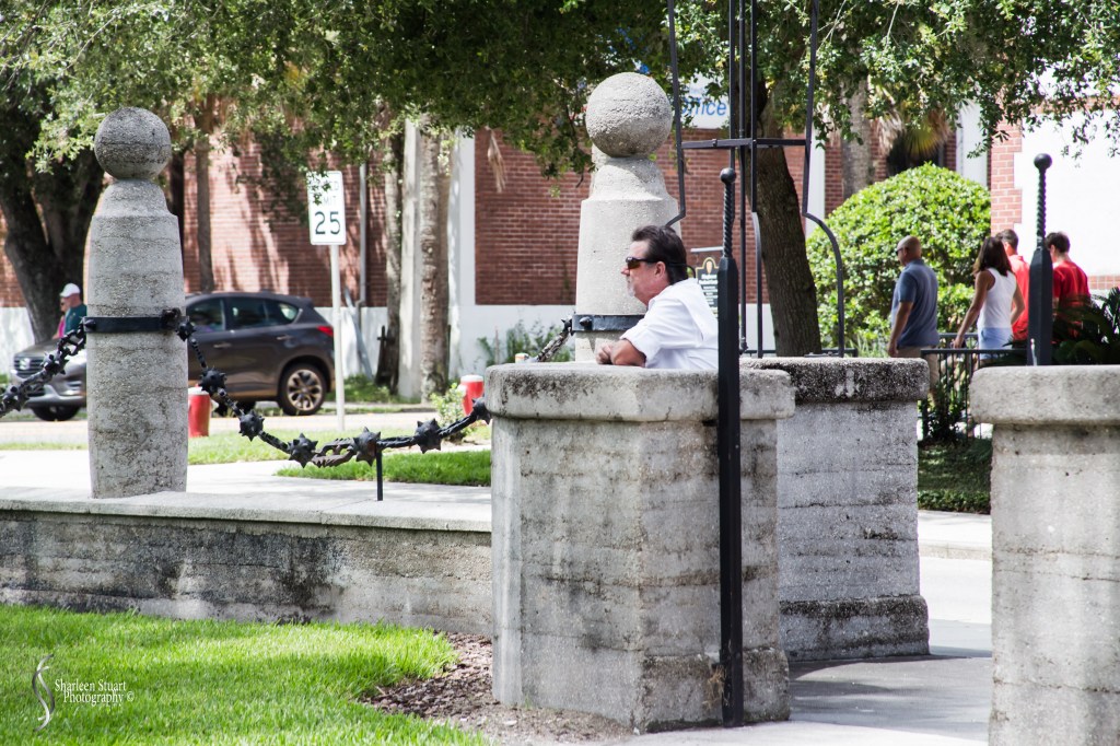 On the far side of the buildings grounds, there is a fence that looks like it has been made out of old cannon balls. St Augustine’s history is that this is the oldest city in Florida, originally Spanish founded and occupied in 1565. St Augustine has a really interesting fort that you can visit. Richard would try and find a bit of shade while waiting for me. Me on the other hand was just distracted by all there is to photograph.