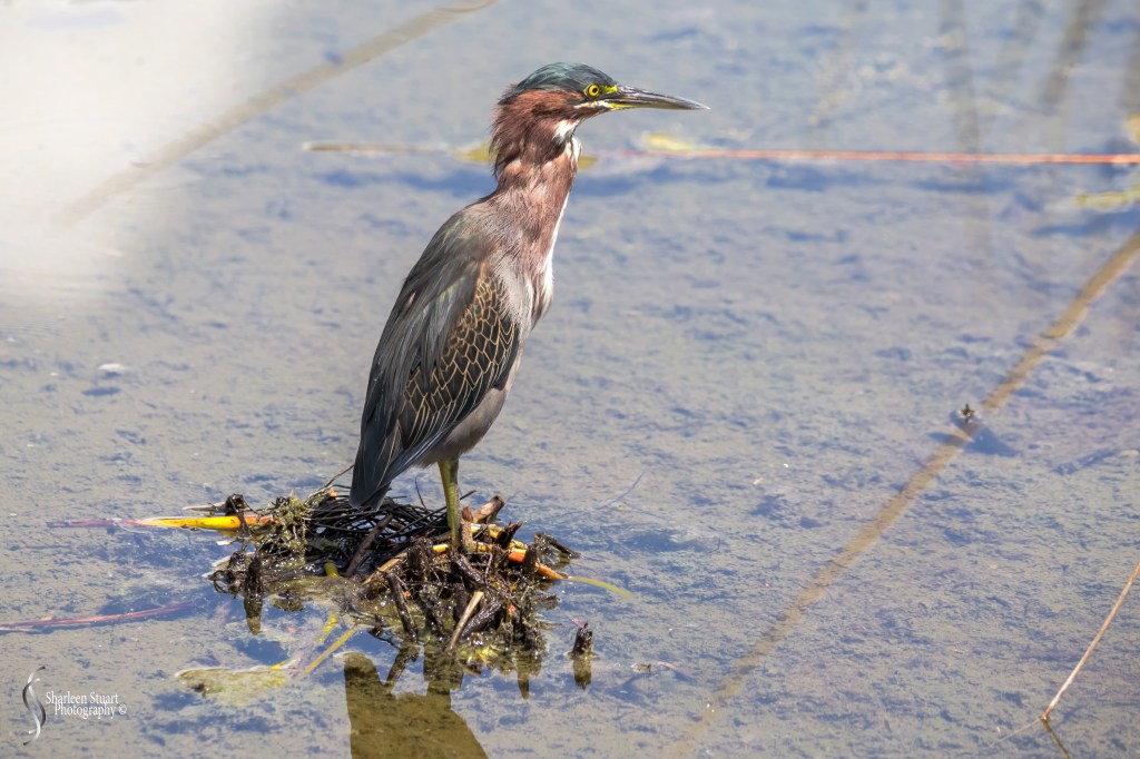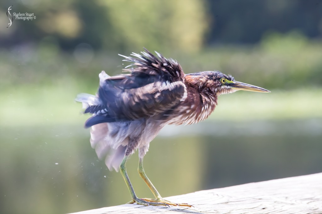 I am not sure who named this bird but the Green Heron really does not have any green on it. This one popped up on the boardwalk railing as I was taking the Comorant. Of course birds have no shame, and I managed to photograph the poop shoot. Post that he flapped all the water off it’s wings and hung out for a while. I felt like today was angry Green Heron day, and you will see a few more images a bit later.
