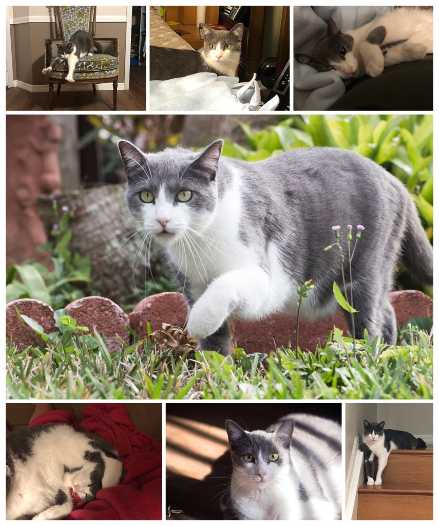 Little did I know that 6 months later she would call me and say “mom you have to take this cat. I have been feeding him and I cannot leave him on the street”. Amy was joining the Peace Corp and traveling to Macedonia. I was not certain. I was worried that the cat was feral. However, I drove up to fetch her and all her belongings and who came home with us but this random cat. I had gone outside to the street level and sat on the patio step and who should wander over but the cat she wanted me to take home. He walked up the steps, sat on my lap and my decision was made. Simba has a clipped ear to indicate that he had been sterilized and put back on the street. This little guy was not feral. In fact, soul brother to Oliver, he has turned out to be the most loving cat, and definitely a favorite of mine. Life on the street does come with disadvantages. Simba’s teeth are yucky. However, just as we were preparing to sort his teeth out (literally on the table with a catheter down his throat), we discover that he has some kind of lung disorder not unlike asthma in a human. Multiple x-rays later and enormous vet bills. it appears that this condition is for his lifetime., He has been on steriods for 2 years now. Simba has been with us almost 7 years now and I hope he is around for a lot longer. This is my cuddle cat. He is my shadow. He sleeps on the couch in my office during the day, and he cuddles into me in the bed at night. He may have found a home, but I found a friend in this little man. Actually as I am writing this, I have Luka (our grandson) on the couch sleeping and not far from him is Simba. Just a pillow in-between.