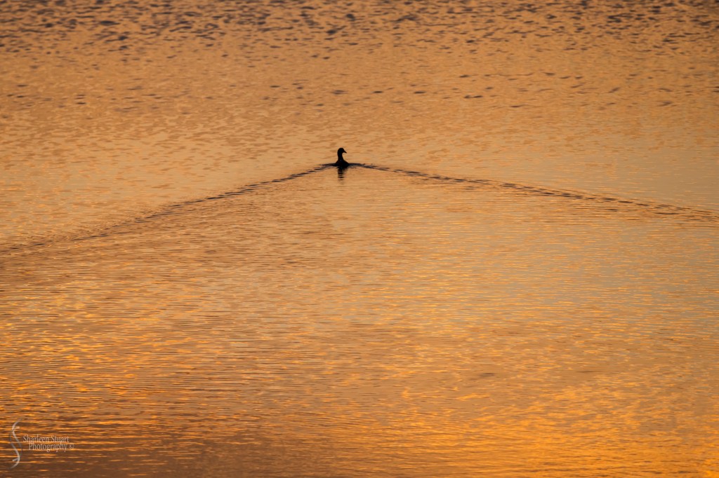 There are all sorts of critters around at this time of night and I am always on the look out. The picture above was the tail end effect of a duck diving. See two below for the same duck looking at it’s refelction.