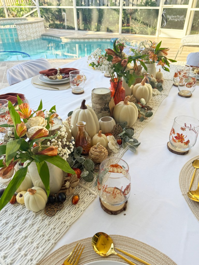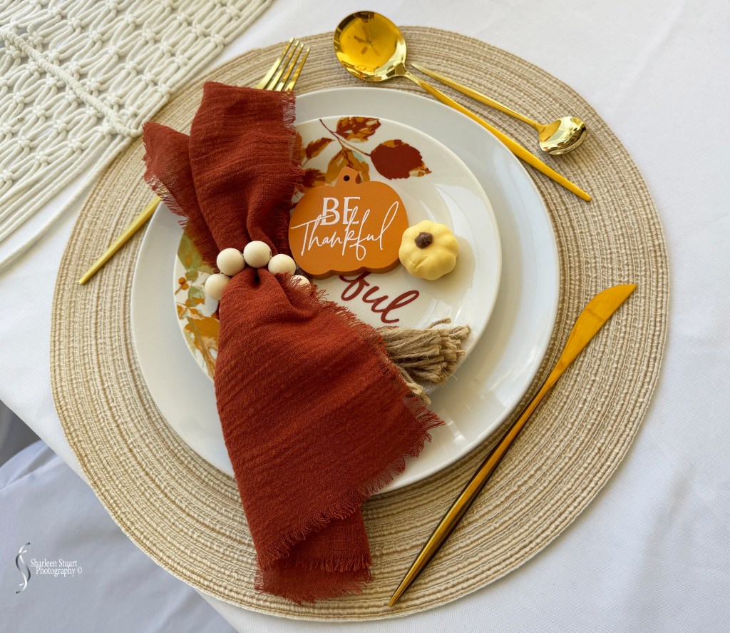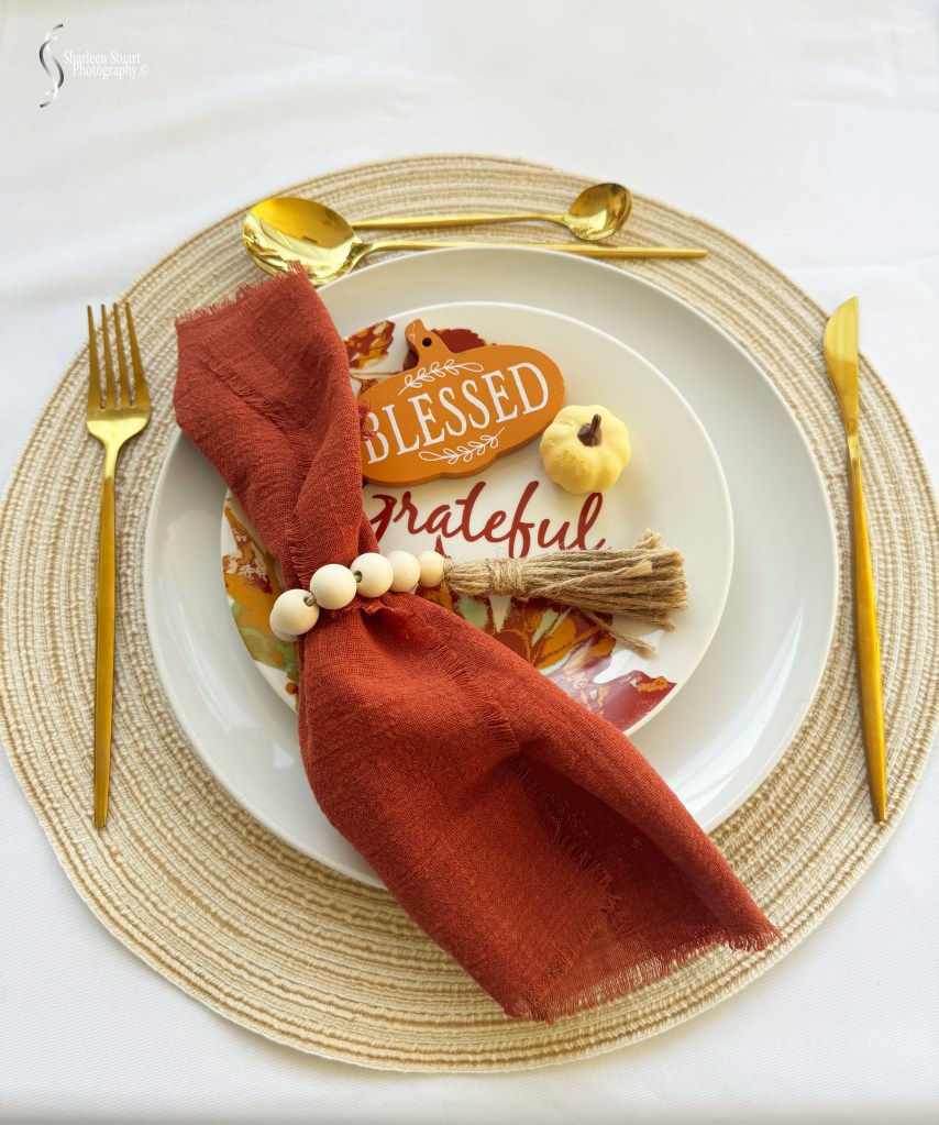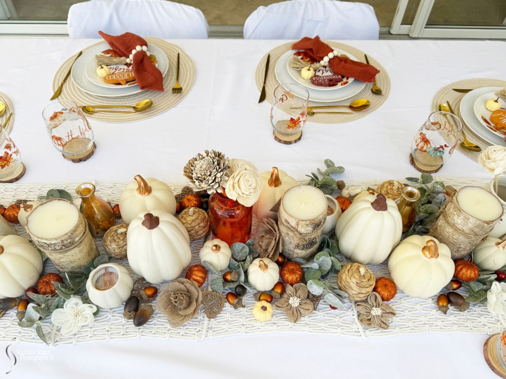 Thanksgiving is not something that we ever celebrated in South Africa, but it has slowly crept up on me and the last two years our daughter in law’s parents have joined us for Thanksgiving dinner. I love to decorate and so I expanded a bit on last years decorations and threw in a bit rust coloring to my look. Despite taking photo’s of the table, I forgot to take photo’s of the food and the people. My priorities were a bit off this year.