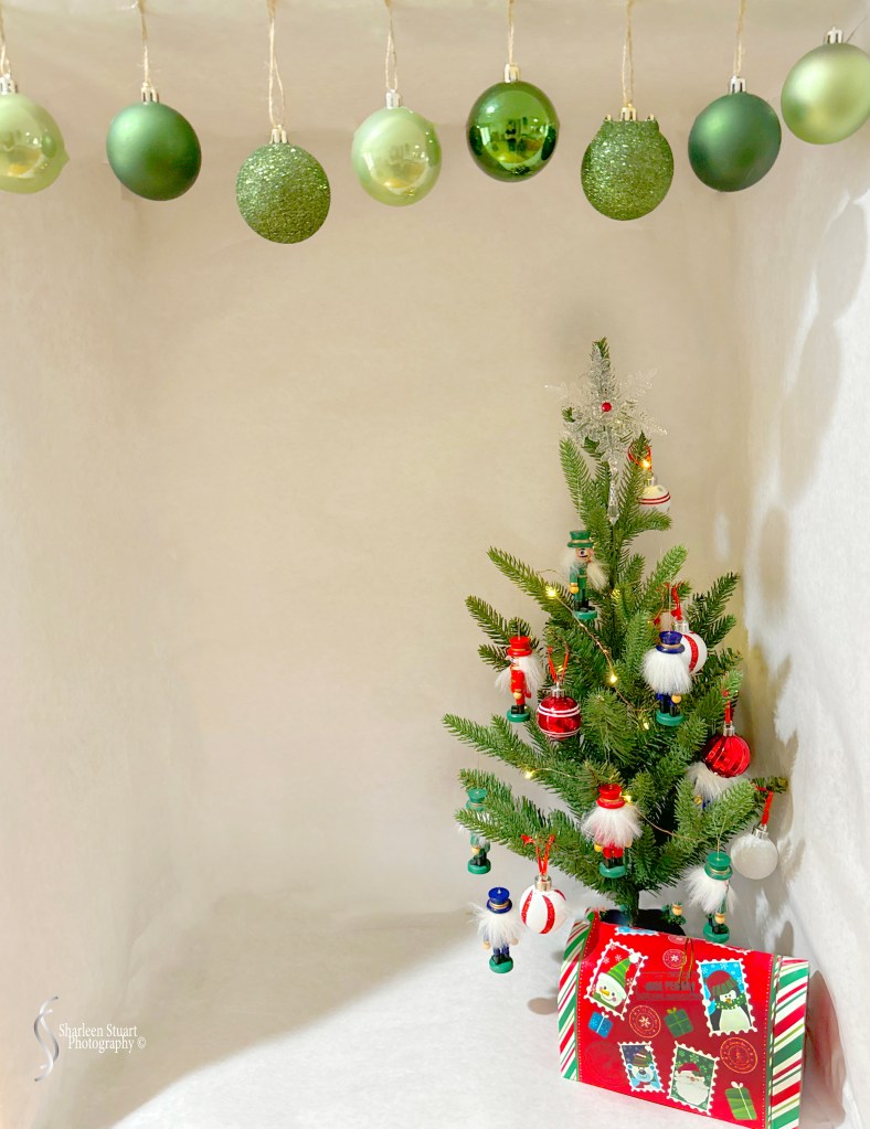 Last but not least, I have a project I would like to try with Luka. It is the stackable boxes where you sit the child in a box and shoot the image and then take each image and stack them in photoshop. It so happens that I bought myself a new office chair and it came in a really big box. So this weekend I lined it with white paper, and put some Christmas balls up, and played around with ideas.