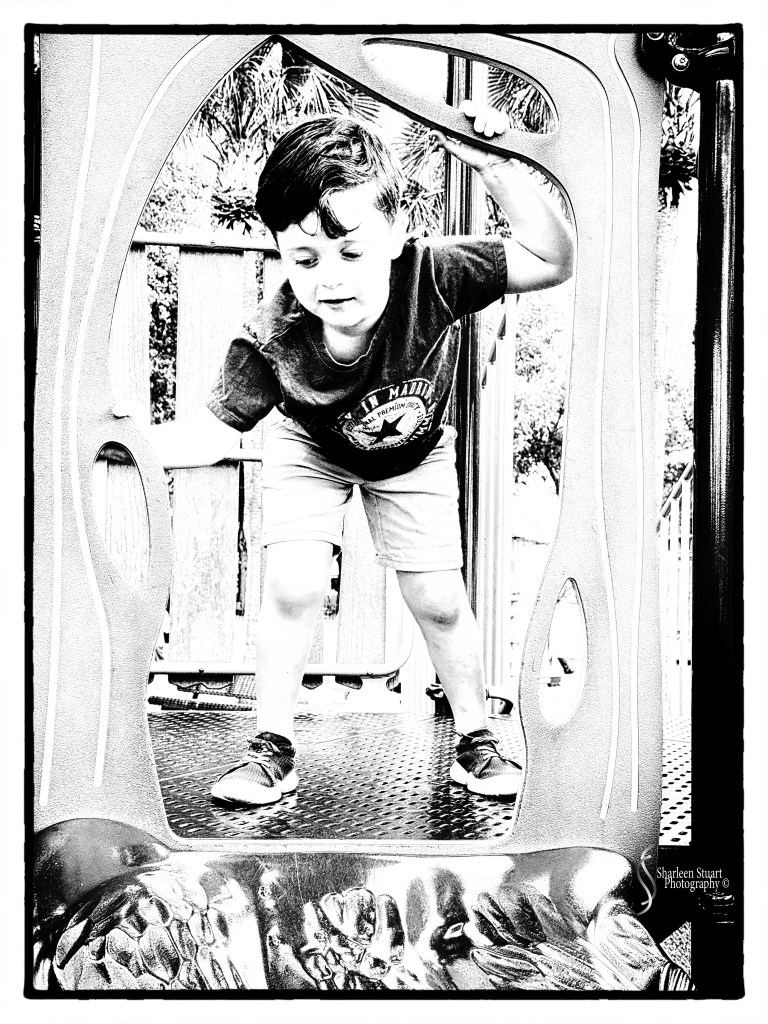 What I looked for in each of these images was how the playground equipment framed Luka. Below is another park image on a different day.