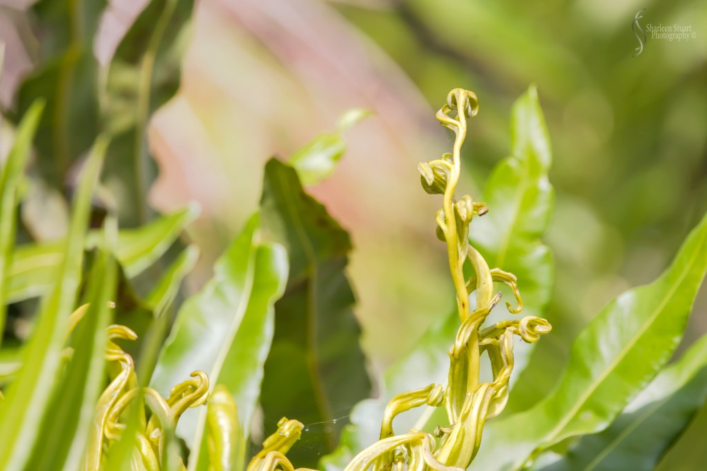 One of seven spikes of a tree orchid that is attached to my palm tree. The ants clearly love the sap of the buds.