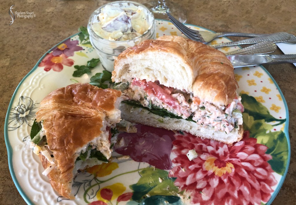 We were seated out on the patio, in the corner away from other quests. Nina personally came out and spoke with Kathryn to see what she could eat. We all ordered something different, along with a bottle of white wine named Enotah. The wine is “100% Chardonel (a Chardonnay and Seyval Blanc hybrid). Aged in oak barrels for 10-12 months. Aromas and flavors of tropical fruit, apples and toasty butter.” I got that directly from their website. Credit to Crane Creek Vineyards. The wine was amazing and paired well with our lunch.