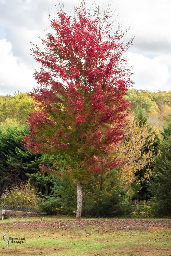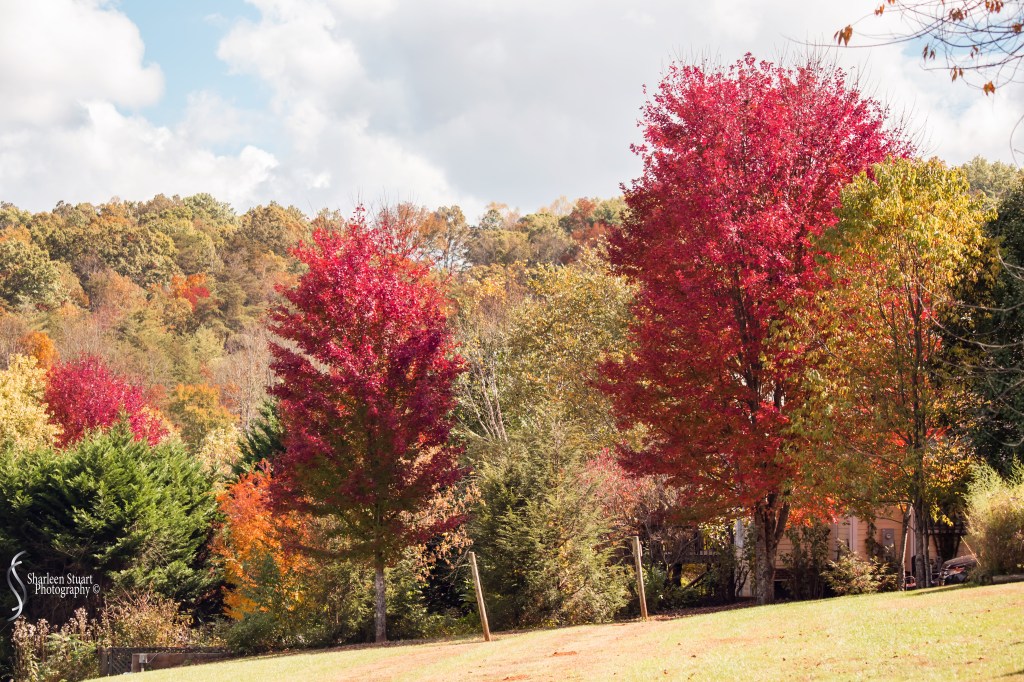 Bursts of color can be found in this scenic view, leaves coat the grass and the smell of fall is a sweet aroma to my senses.